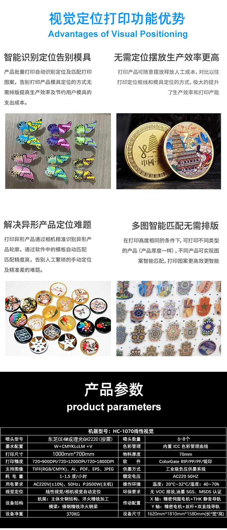 設備型號:HC-1070線性視覺UV打印機